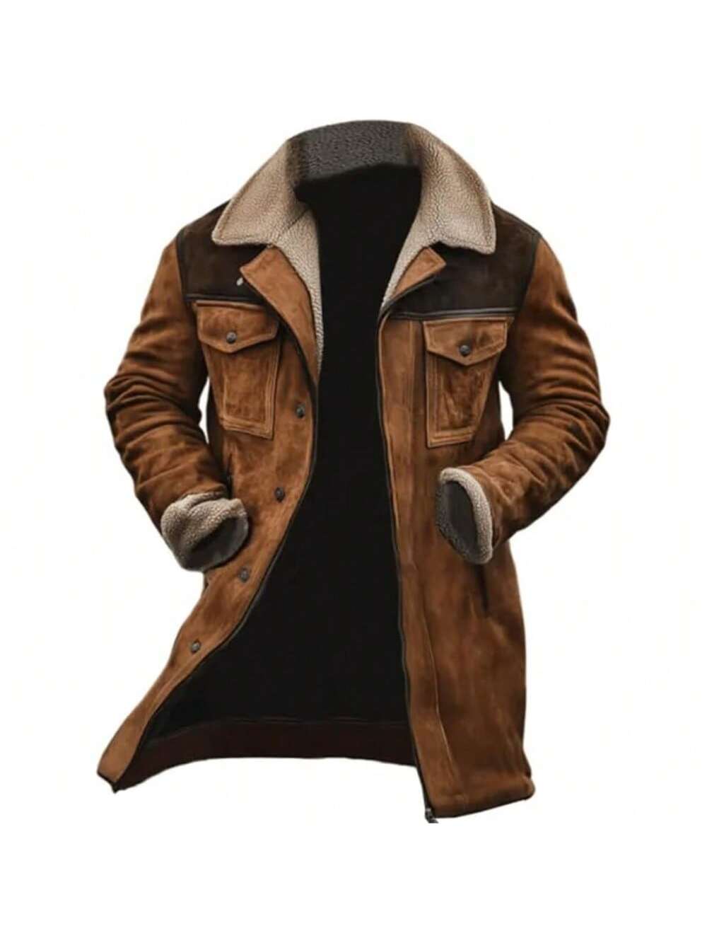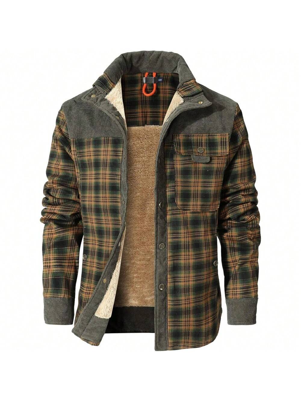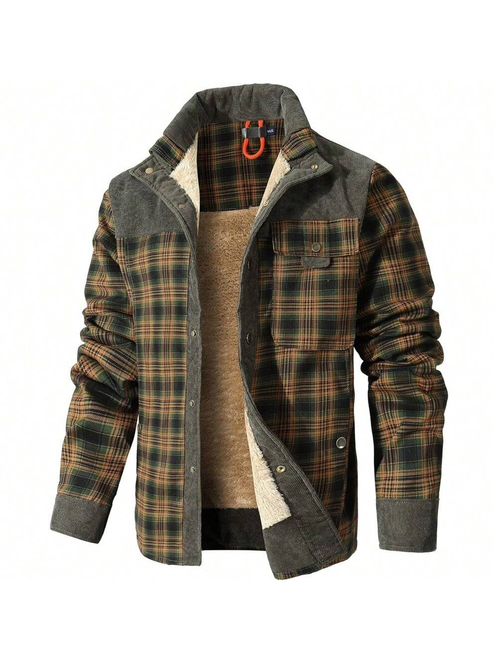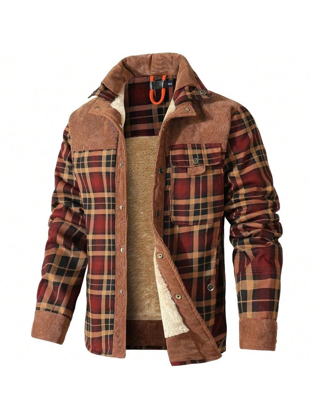 Men's Corduroy Plaid Sherpa Lined Flannel Shirt Jacket Fleece Coat