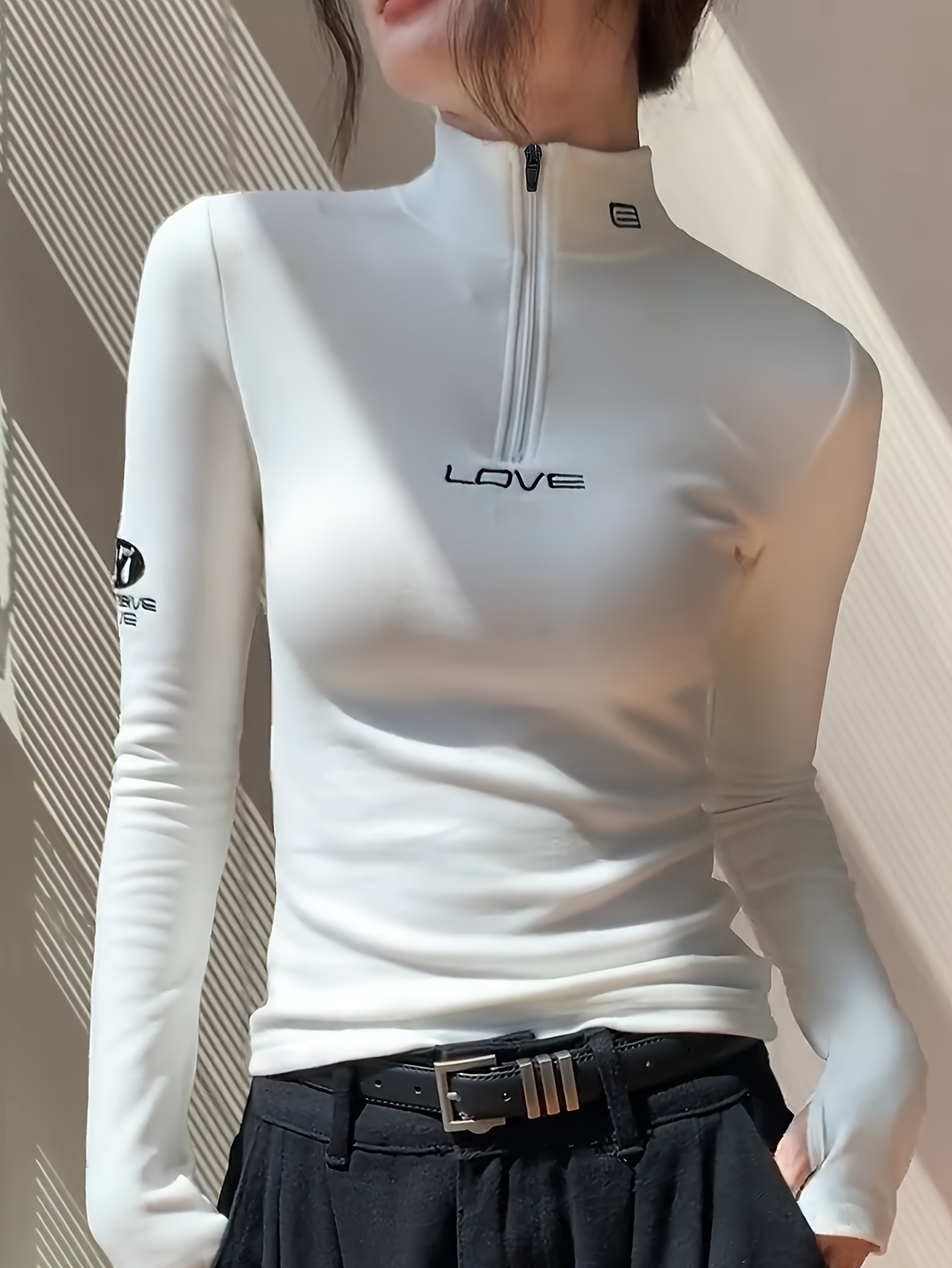 Spring and Autumn Women's Soft Comfortable Long Sleeve T-shirt with Zipper Inner Layer as the Basic Top.