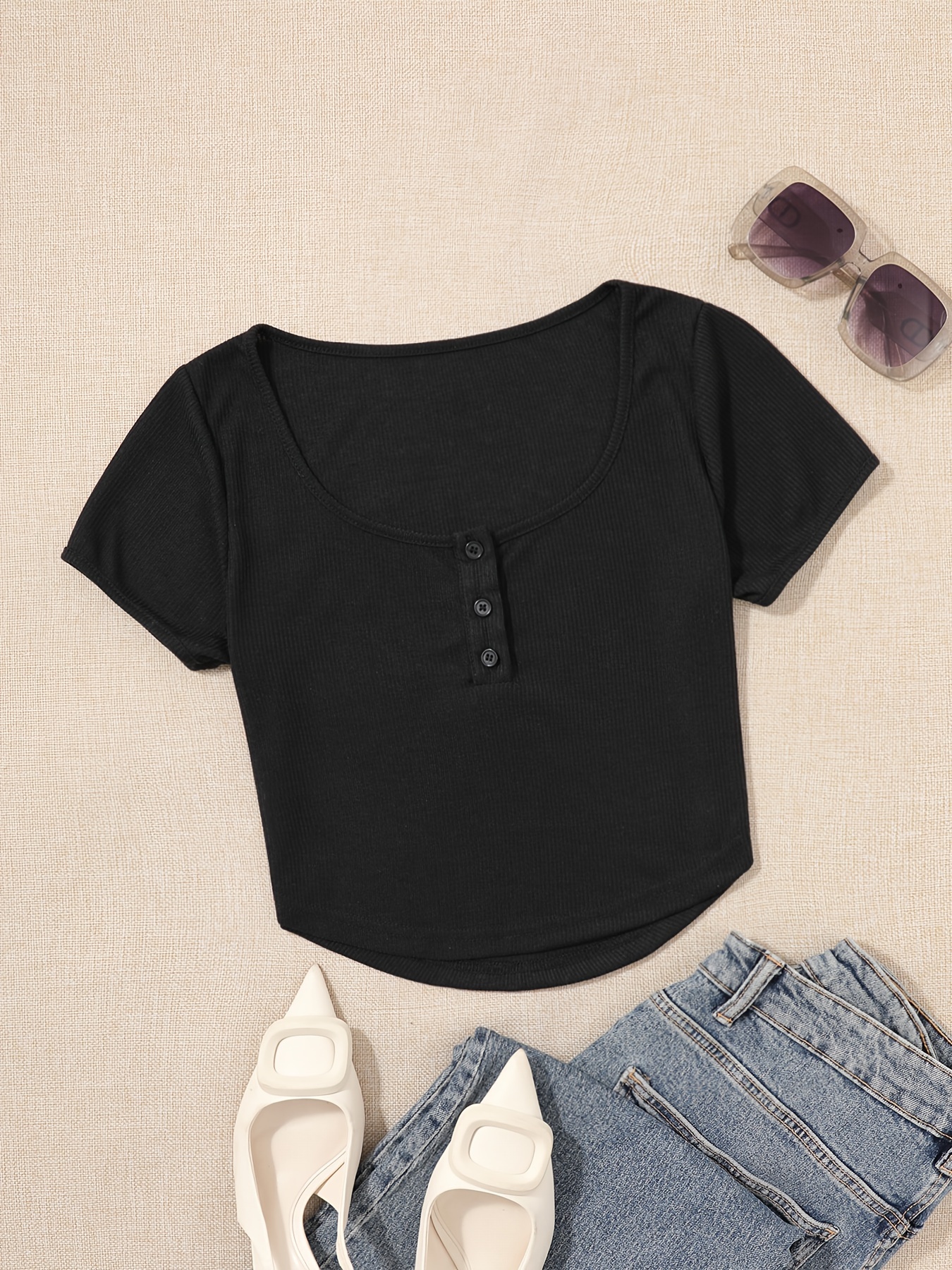 High Waist Solid Color Viscose Blend Slim Fit Jeans with Button Details, Mid-Stretch Woven Pants - Suitable for All Seasons