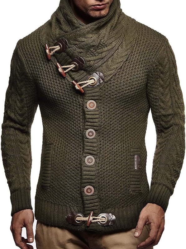 Leif Nelson Men's Knitted Turtleneck Jacket - Winter Cardigan Sweaters for Men