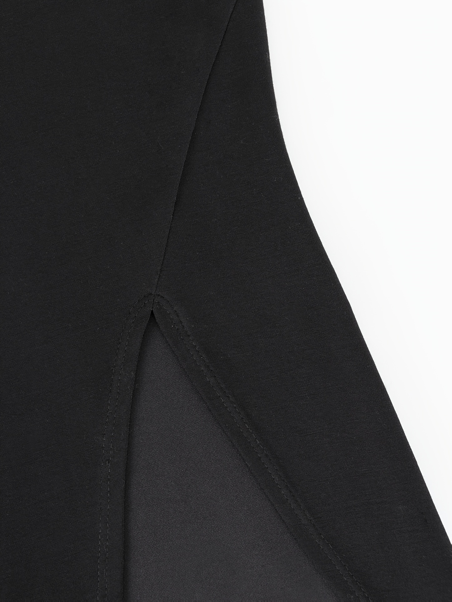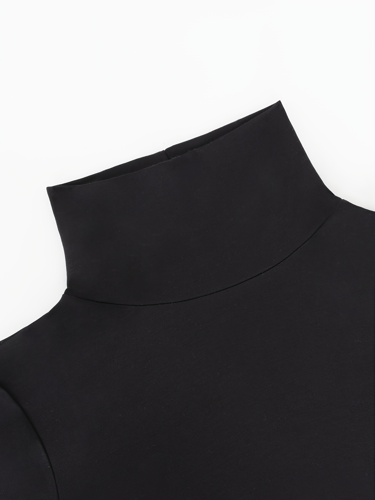 Long Sleeve High Neck Solid Color Slim Fit Slit Long Top