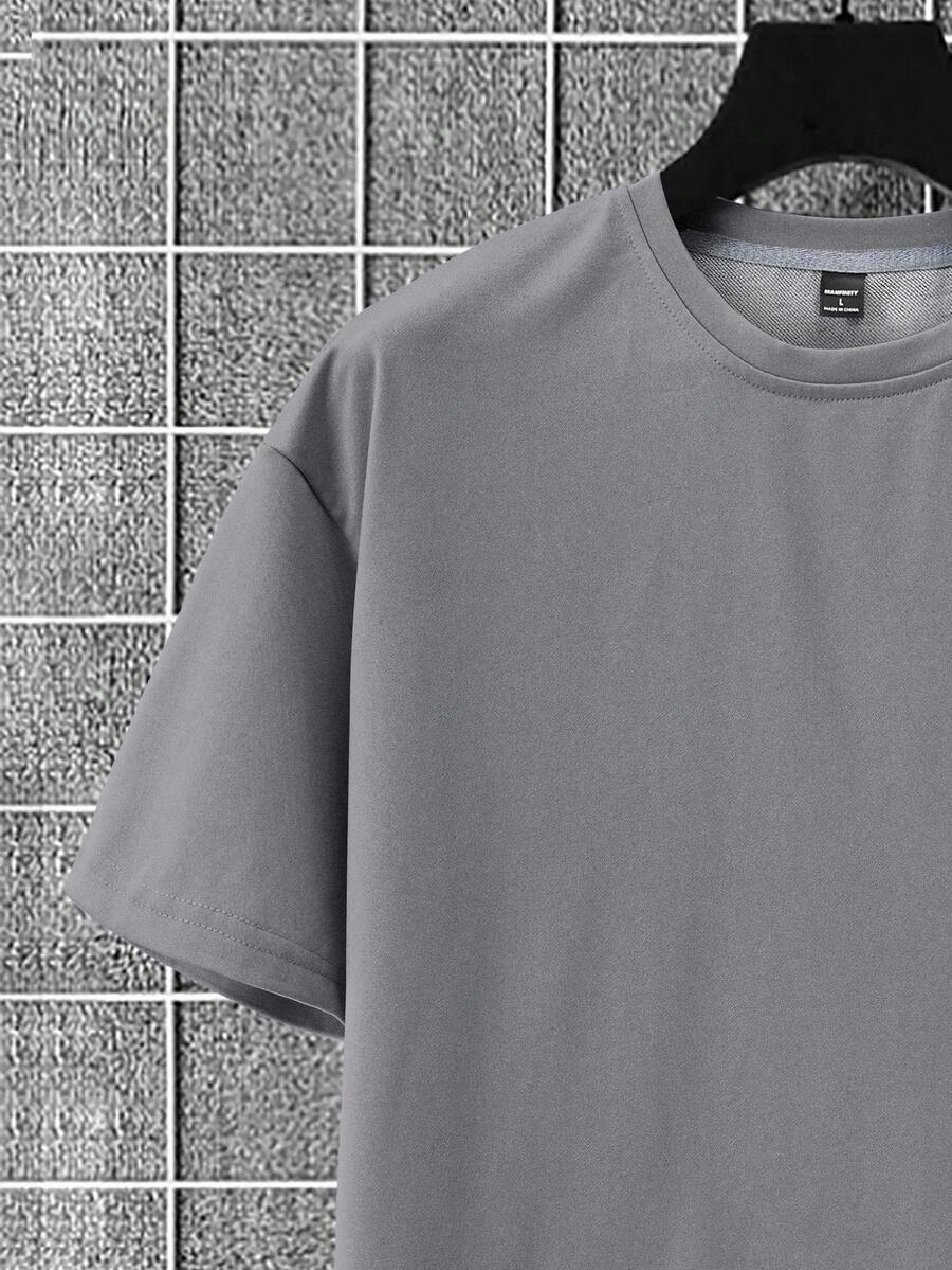 Manfinity Homme 2pcs/Set Men's Solid Color Round Neck Short Sleeve T-Shirt & Cargo Shorts, Casual