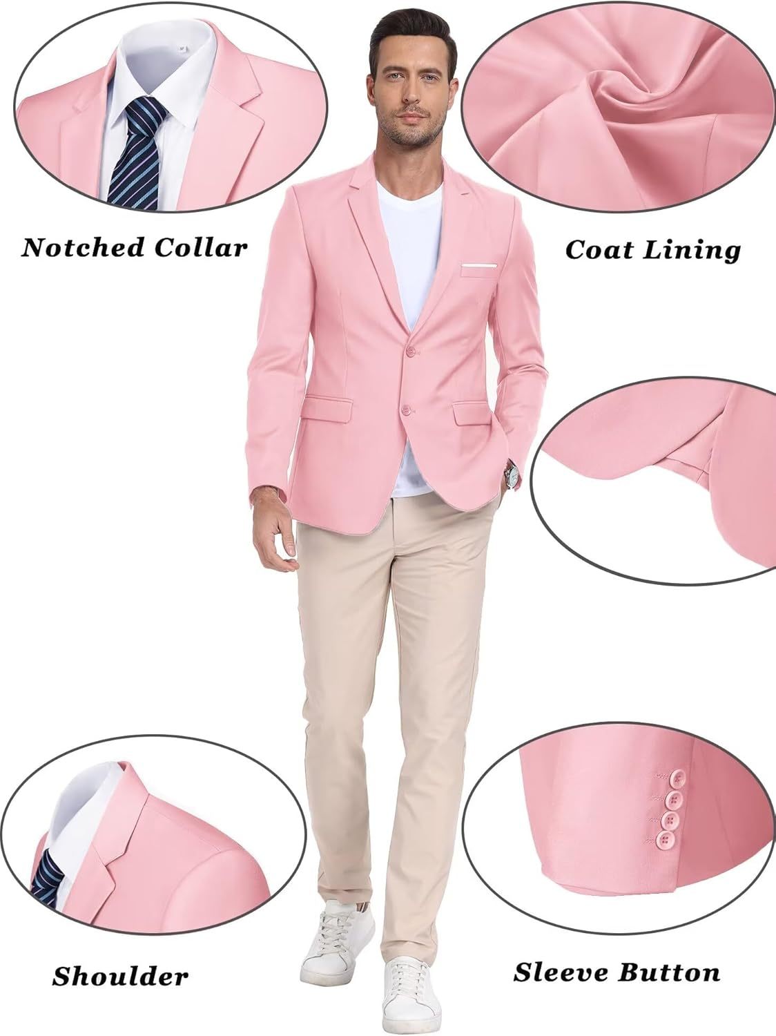 Mens Suit Jackets Casual Two Button Slim Fit Blazers Suit Separates Coat Sport Coats with Pockets for Wedding Prom Party