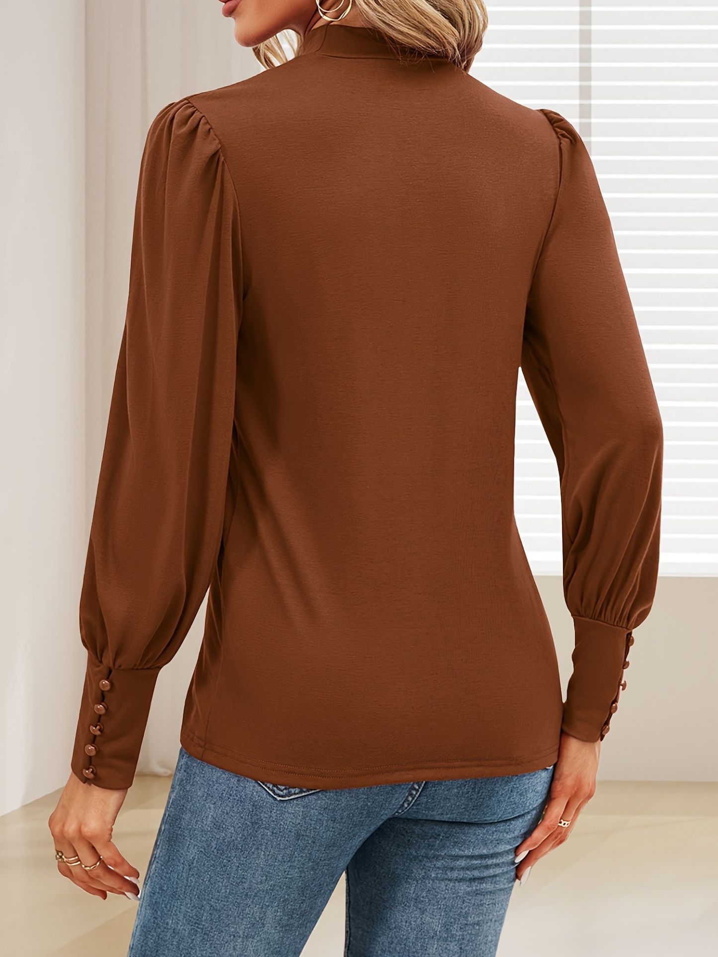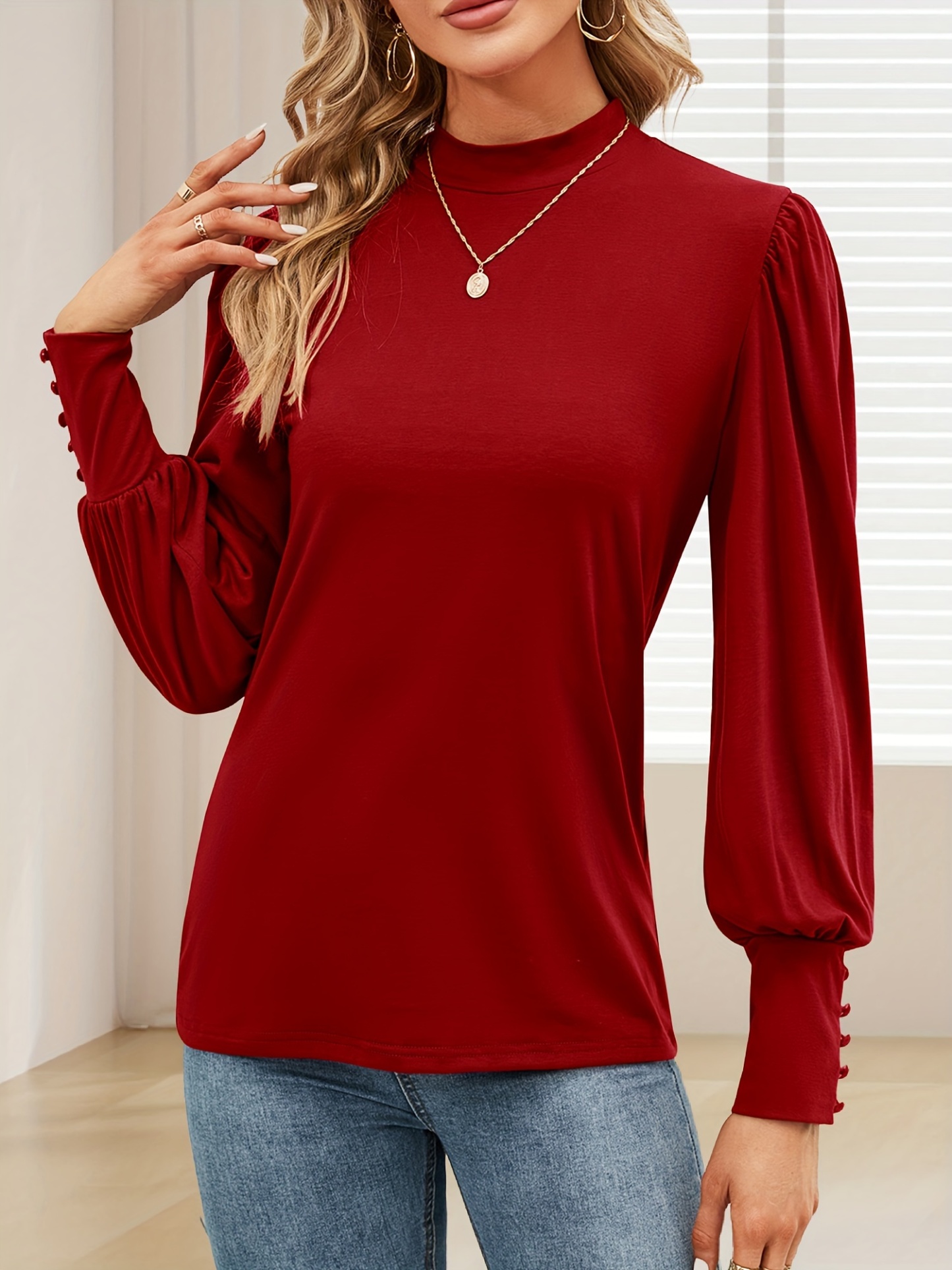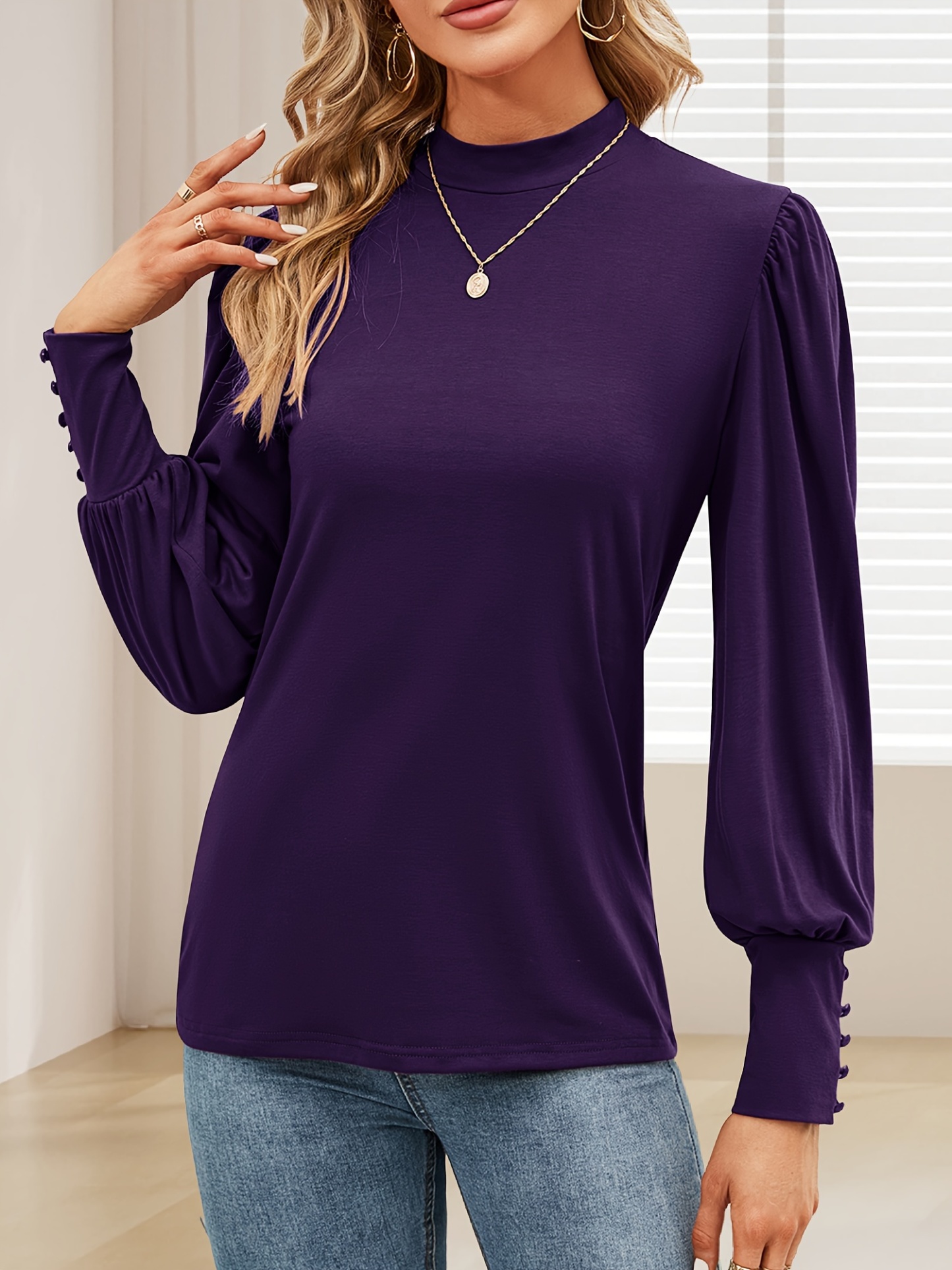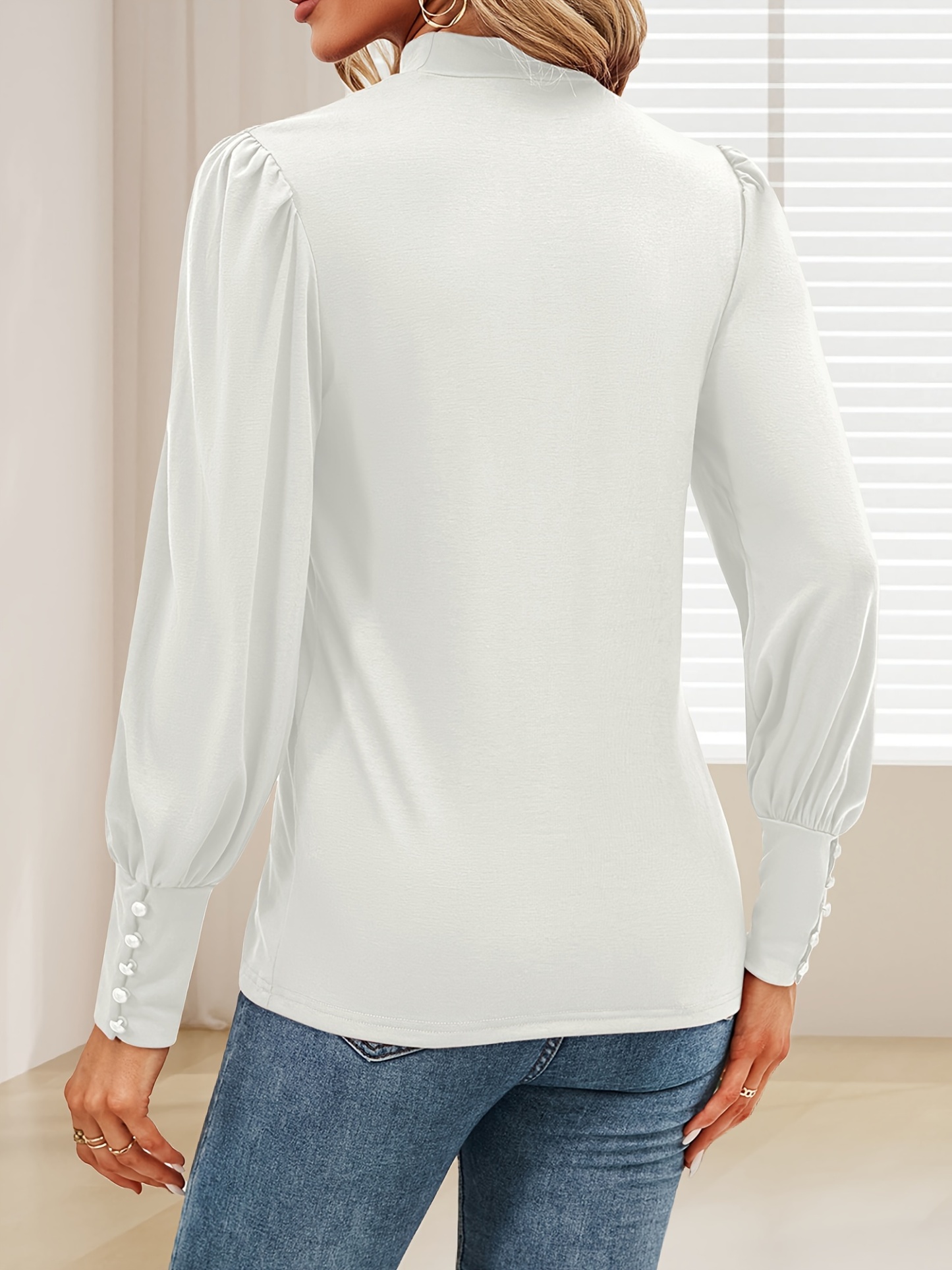 Women's Faux Collar Bubble Long Sleeve Top Casual Loose Solid Color Basic T-shirt Button Cuff Pullover Shirt Women