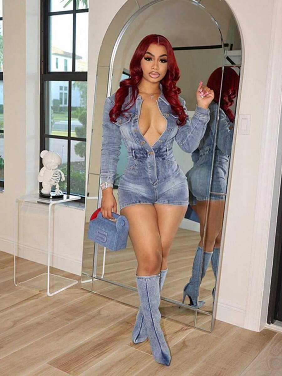 Women's High-Street Spring Denim Romper| Stretch Slim Short Jumpsuit